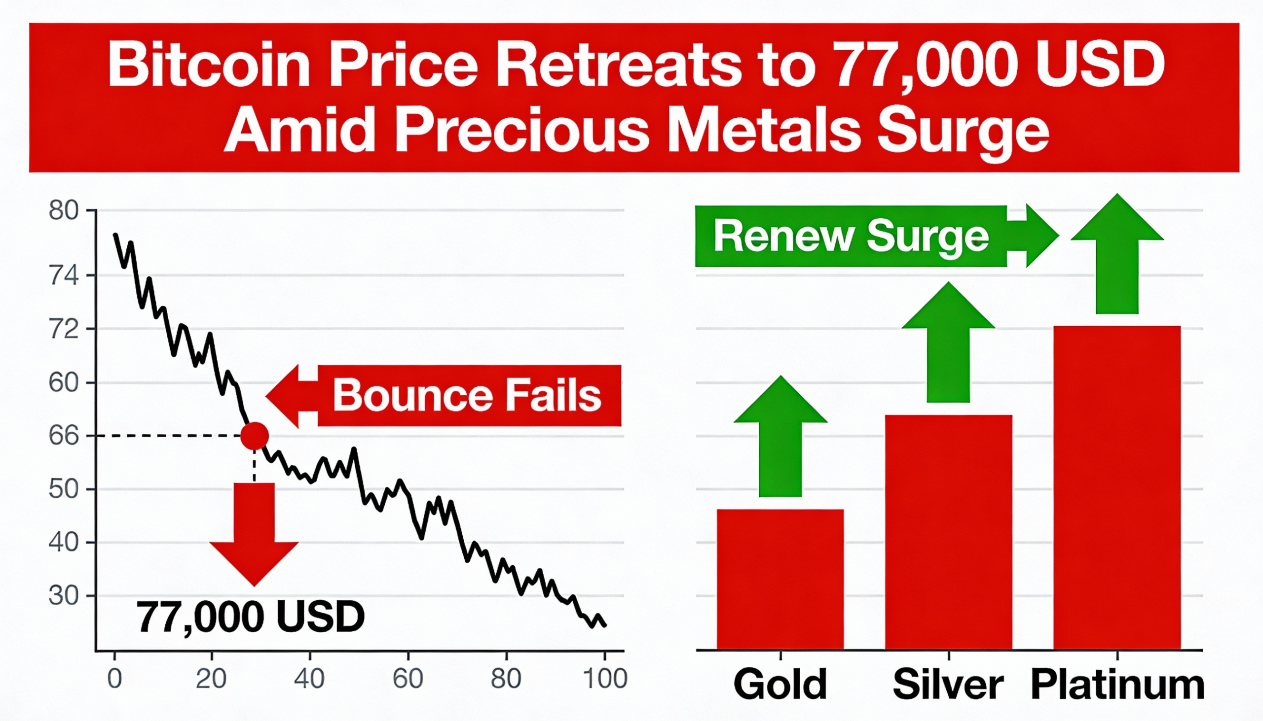 Crypto bounce fades with bitcoin back at $77,000, metals push higher